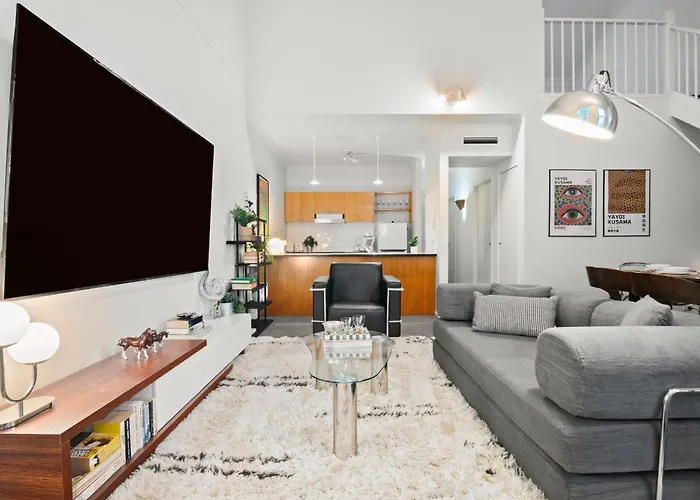 Disfruta de tus vacaciones en Melburne en el Apartamento Southbank Gem 3Br Artistic Double Story Loft Sleep 8 Melburne. Ideal para quienes buscan una experiencia auténtica, está situado a 2 km de los Jardines Carlton y a 10 minutos a pie del Casino Crown.